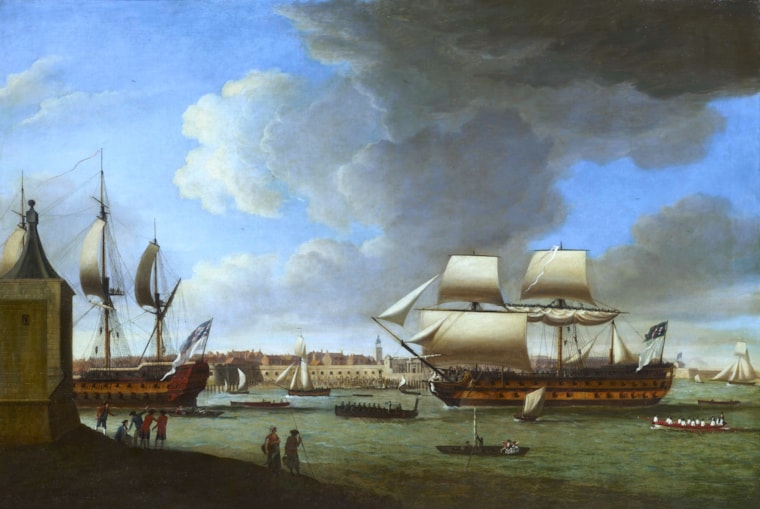 Dominic Serres The 'Foudroyant', commanded by Sir John Jervis, bringing the 'Pégase', a French 74, into Portsmouth