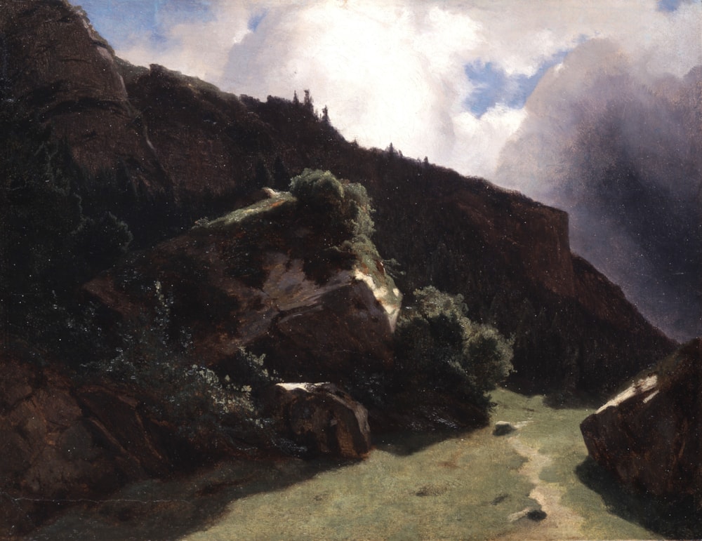 A major figure in Swiss landscape painting, Calame enjoyed international success during the nineteenth century. In 1835 he went on his first study trip to the Bernese Oberland, famous for its spectacular mountains and valleys, and would spend nearly every summer in the Alps for the next twenty-five years. Although these oil studies were considered helpful working tools, necessary for the development of formal works of art, we now appreciate how much they reveal about the artist’s working methods. Nothing was improvised, despite the bold compositions and dramatic lighting.