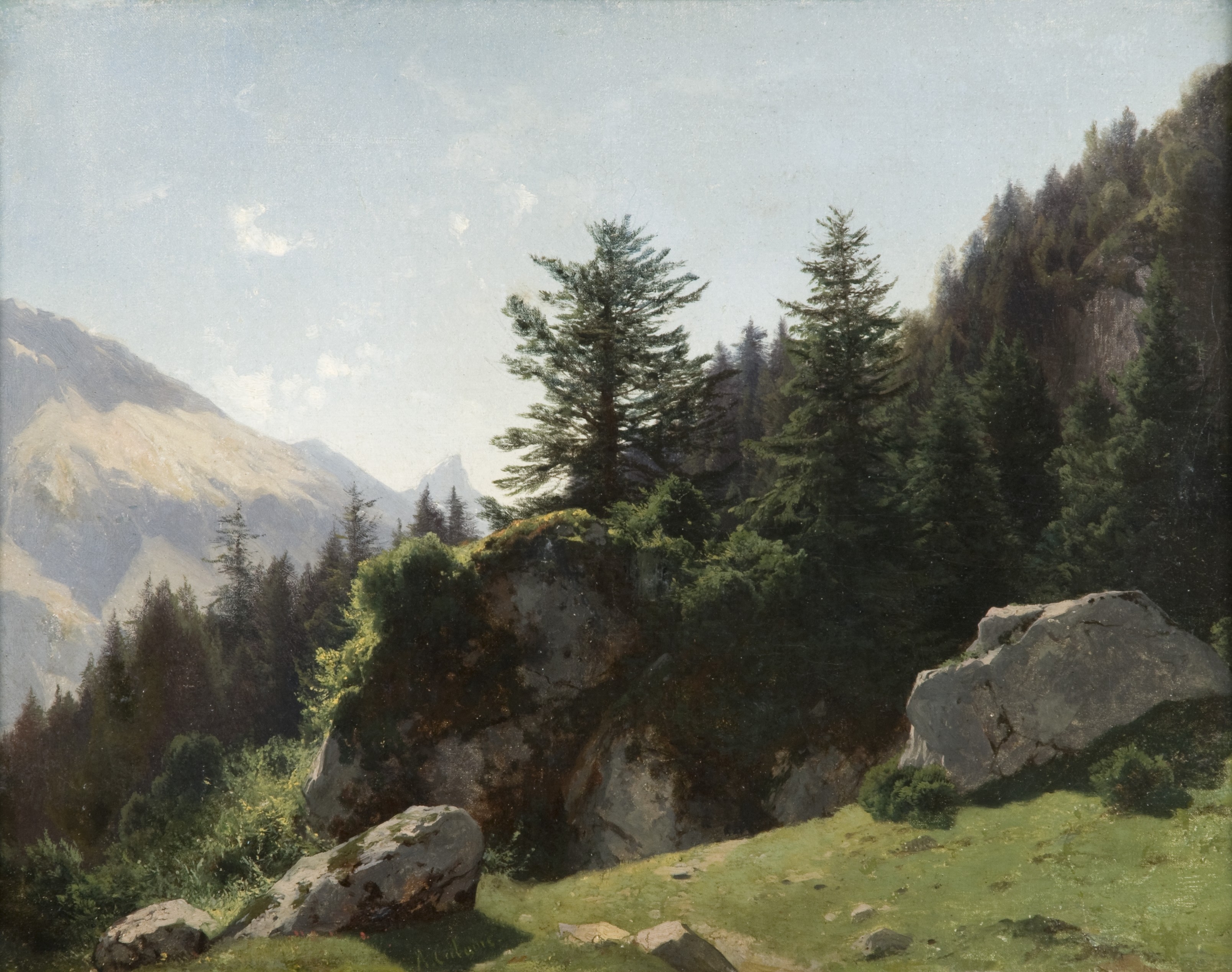 Fir trees above Handeck with the Ritzlihorn in the distance, Bernese Oberland