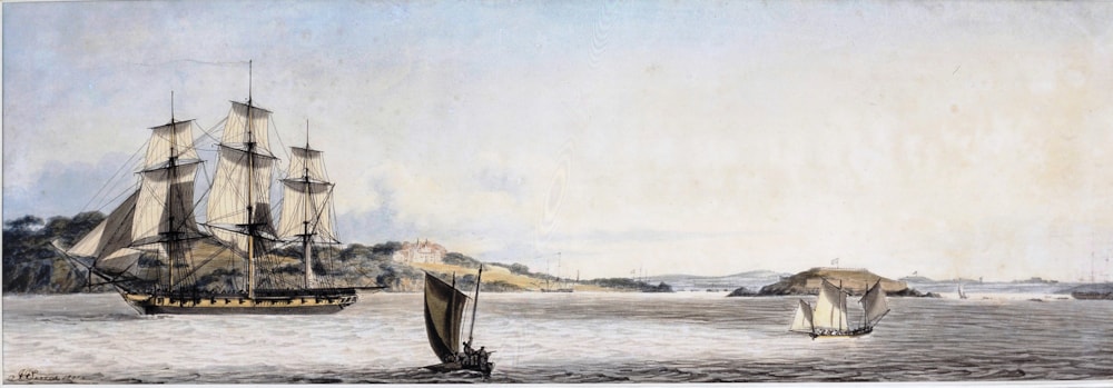 A Frigate leaving Plymouth Sound, with other Vessels nearby