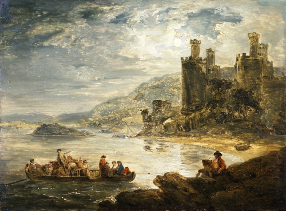 The artist sketching Conway Castle by moonlight