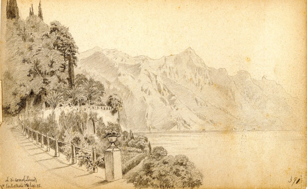 Lecco, Lake Como with study of buildings in Lombardy on reverse