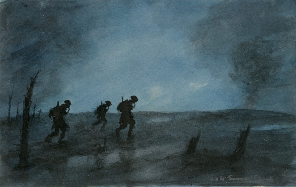 British troops in gas masks going up the line at night