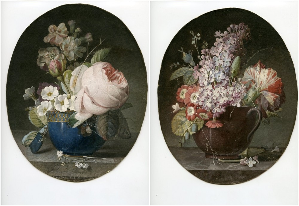 This exceptionally well preserved pair of flower bouquets painted in gouache display all the hallmarks of the ‘Golden Age’ of French flower painting: technical virtuosity and aesthetic sensitivity. A pupil of Jean-Jacques Bachelier (1724-1806) in Paris, Prévost exhibited numerous paintings and drawings at the Salons, and his last recorded entry was in 1810. Unlike his contemporary, Redouté, Prévost’s goal was not primarily scientific. His original watercolours were used as models for a series of exquisite colour-plate botanical books and references for porcelain and fabric pattern designers.