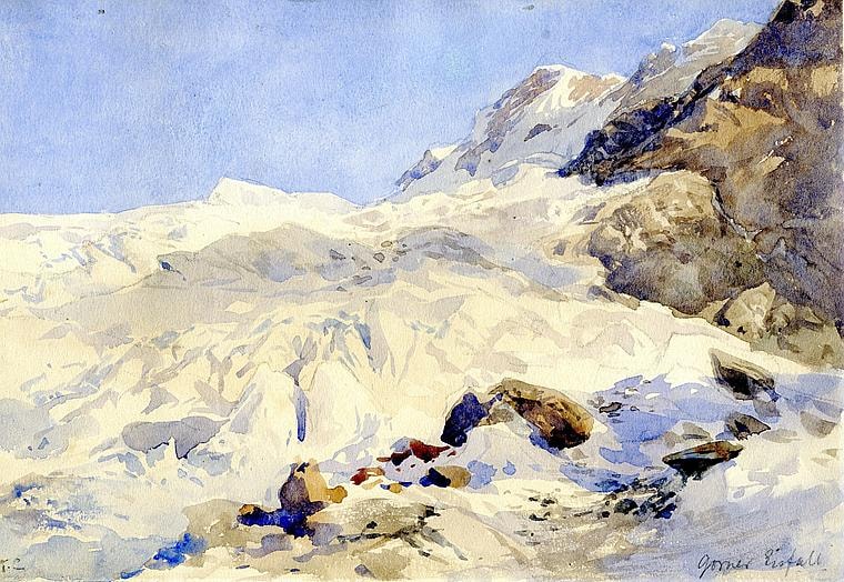signed with monogram lower left and inscribed: Gorner Eisfall