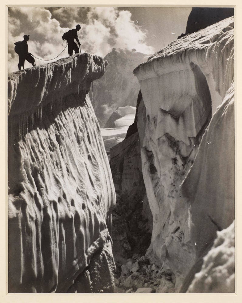 Climbers on crevasses below the Aiguille du Requin, Chamonix.