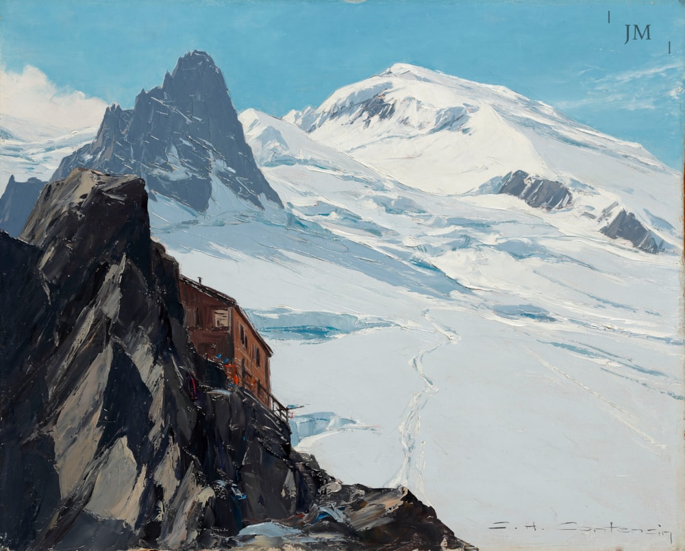Having survived the First World War when only 17 years old, Contencin trained as an architect and draughtsman and from an early age began to paint and climb in the Savoie and Bernese Oberland. Initially he was employed by the French railways where he ended up commissioning works of art for their respective companies. Although he was technically an amateur painter, he was an active member of the Paris based Société des Peintres de Montagne and his paintings were frequently displayed in regional and national exhibitions. Towards the end of his life he was the President of the Société.