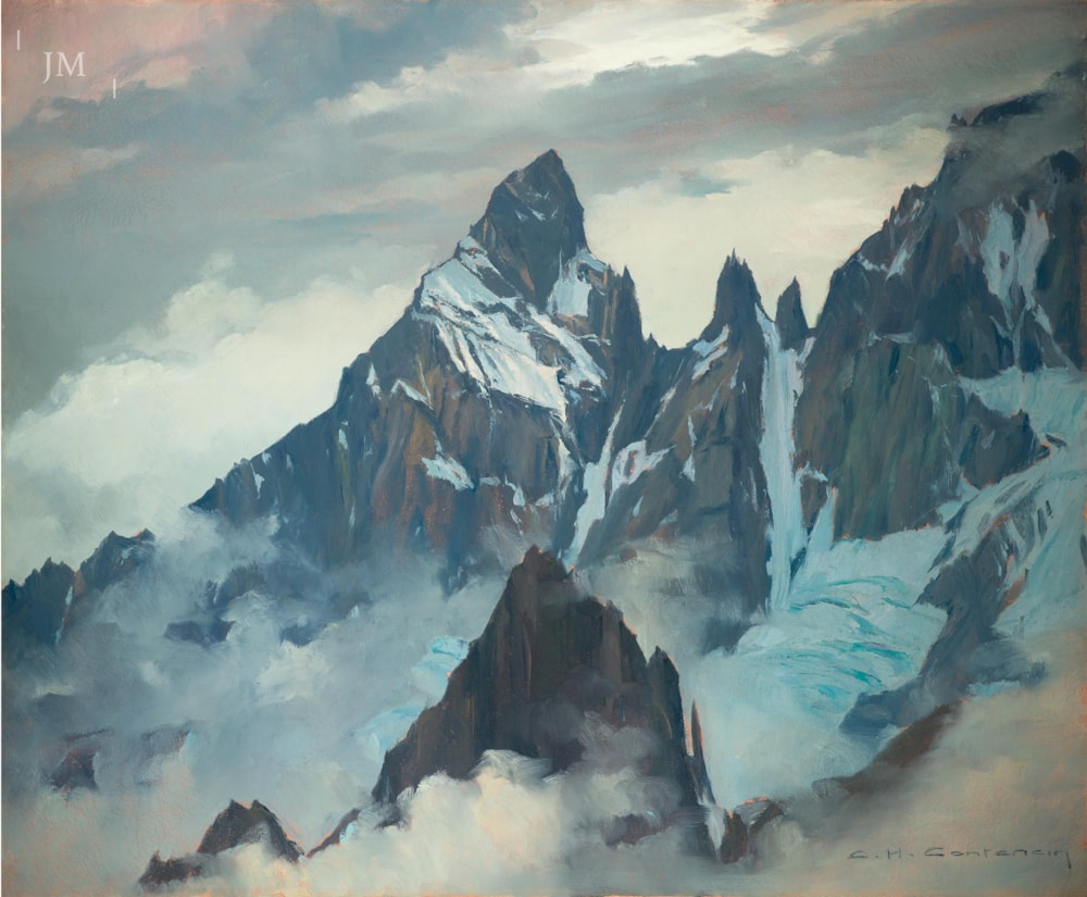 Having survived the First World War when only 17 years old, Contencin trained as an architect and draughtsman and from an early age began to paint and climb in the Savoie and Berner Oberland. Initially he was employed by the French railways where he ended up commissioning works of art for their respective companies. Although he was technically an amateur painter, he was an active member of the Paris based Société des Peintres de Montagne and his paintings were frequently displayed in regional and national exhibitions. Towards the end of his life he was the President of the Société.
