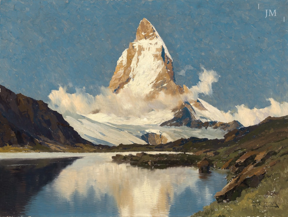 The Matterhorn seen from Riffelsee, Zermatt, Valais, Switzerland