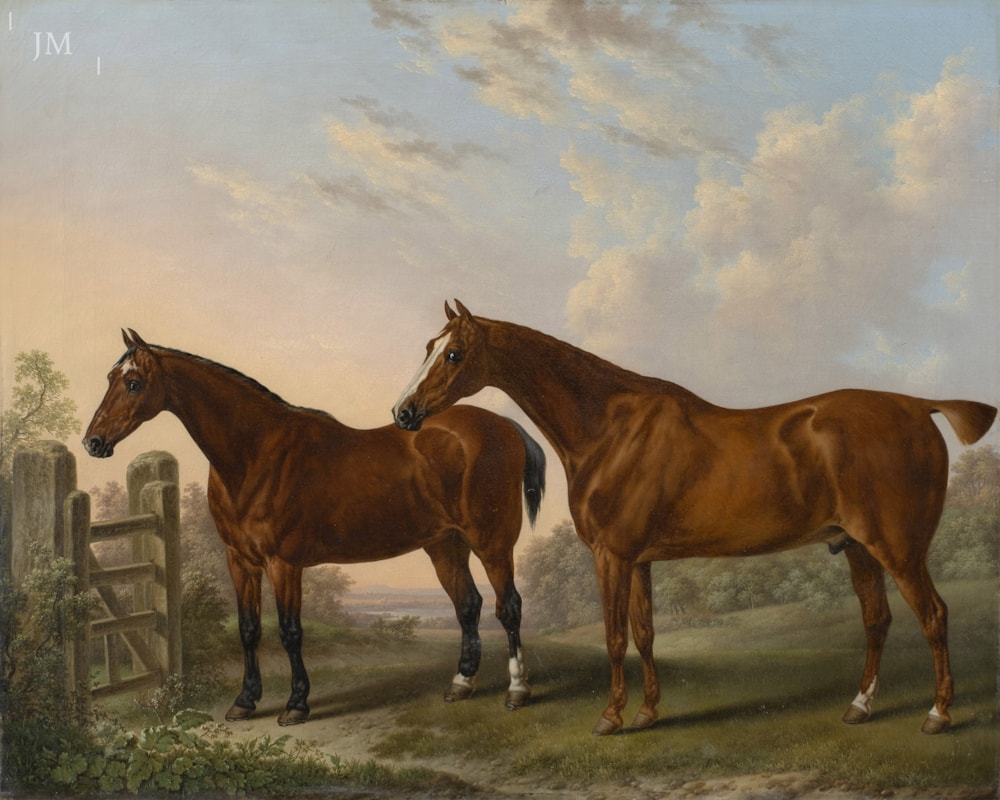 A Bay Hunter and a Chestnut in an Extensive Landscape