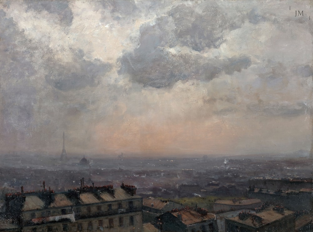 Reminiscent of van Gogh’s 1882 panorama of the same view, this atmospheric oils on canvas is the second known cityscape of Paris by Loppé.