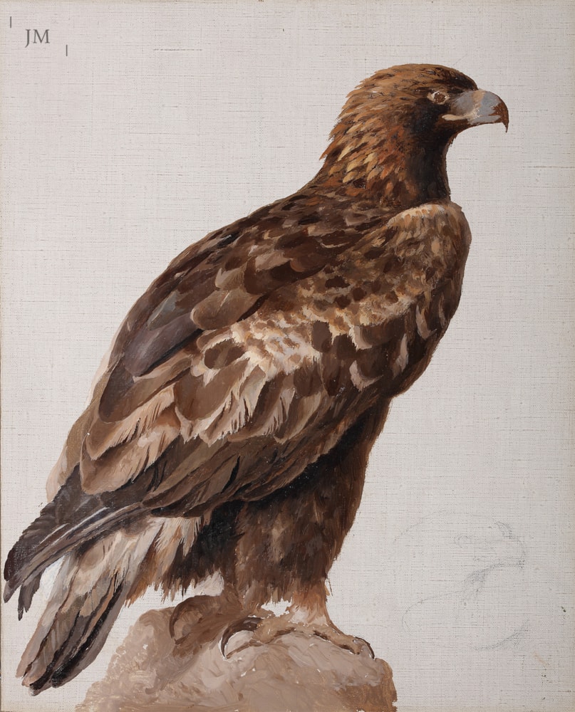 Ferdinand’s magnificent Fighting Capercailies (1886) hangs today in the Ateneum Art Museum in Helsinki, and is nothing less than an icon of Finnish art. In the same national collection hangs his Golden Eagle by a Lake (1897, oil on canvas, 31 x 40 in.), for which this is a study.
