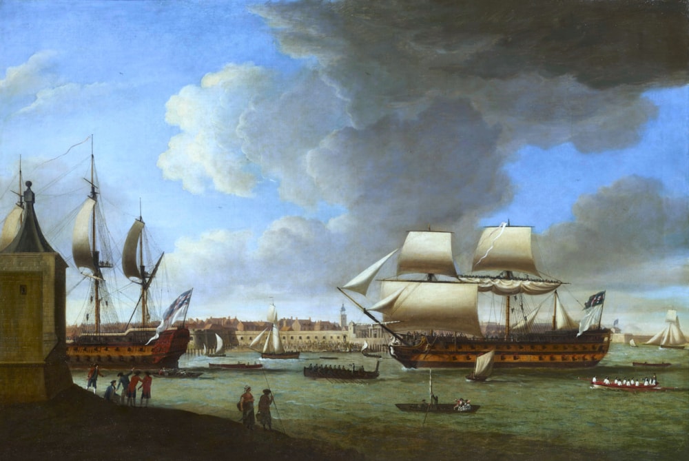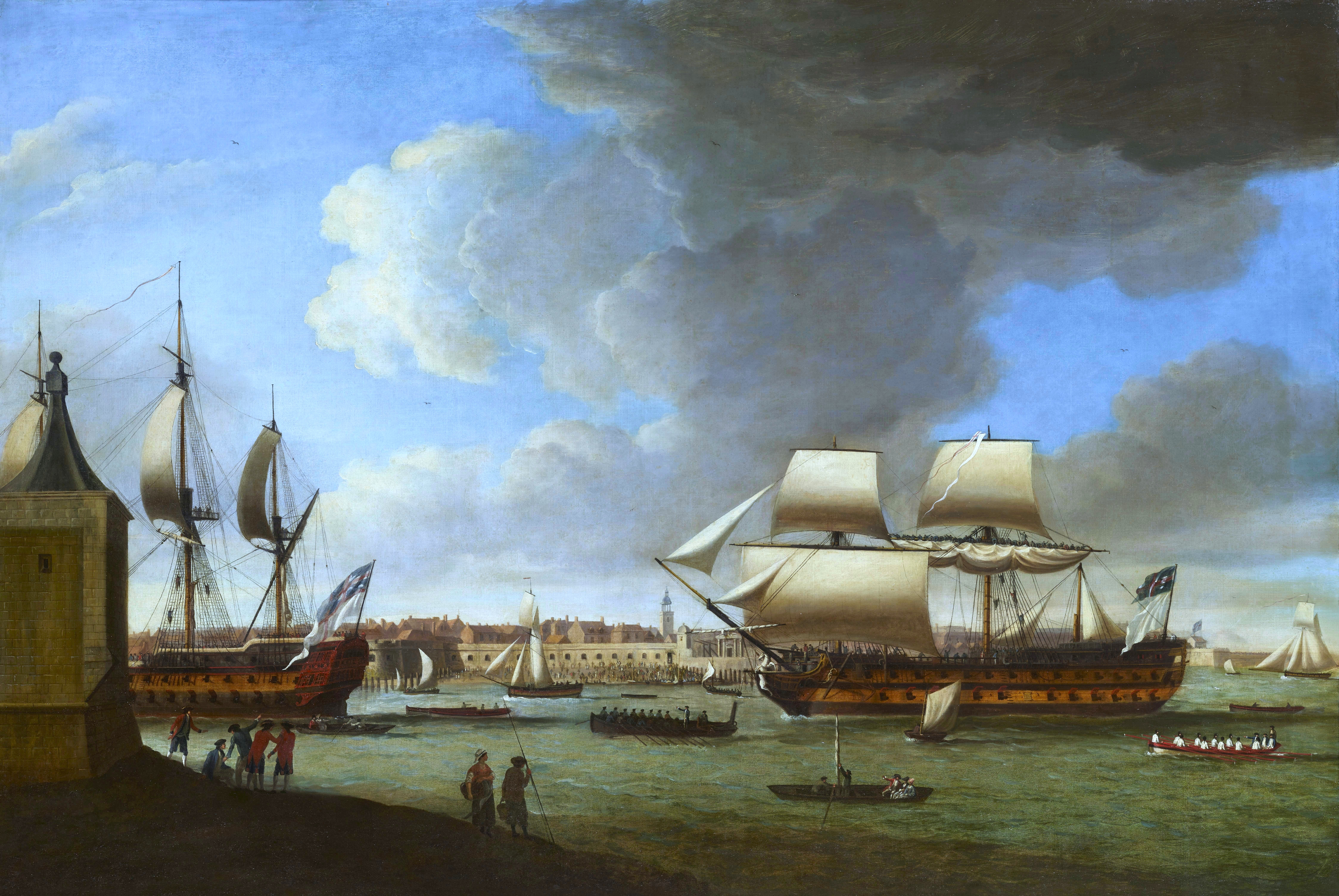 The 'Foudroyant', commanded by Sir John Jervis, bringing the 'Pégase', a French 74, into Portsmouth