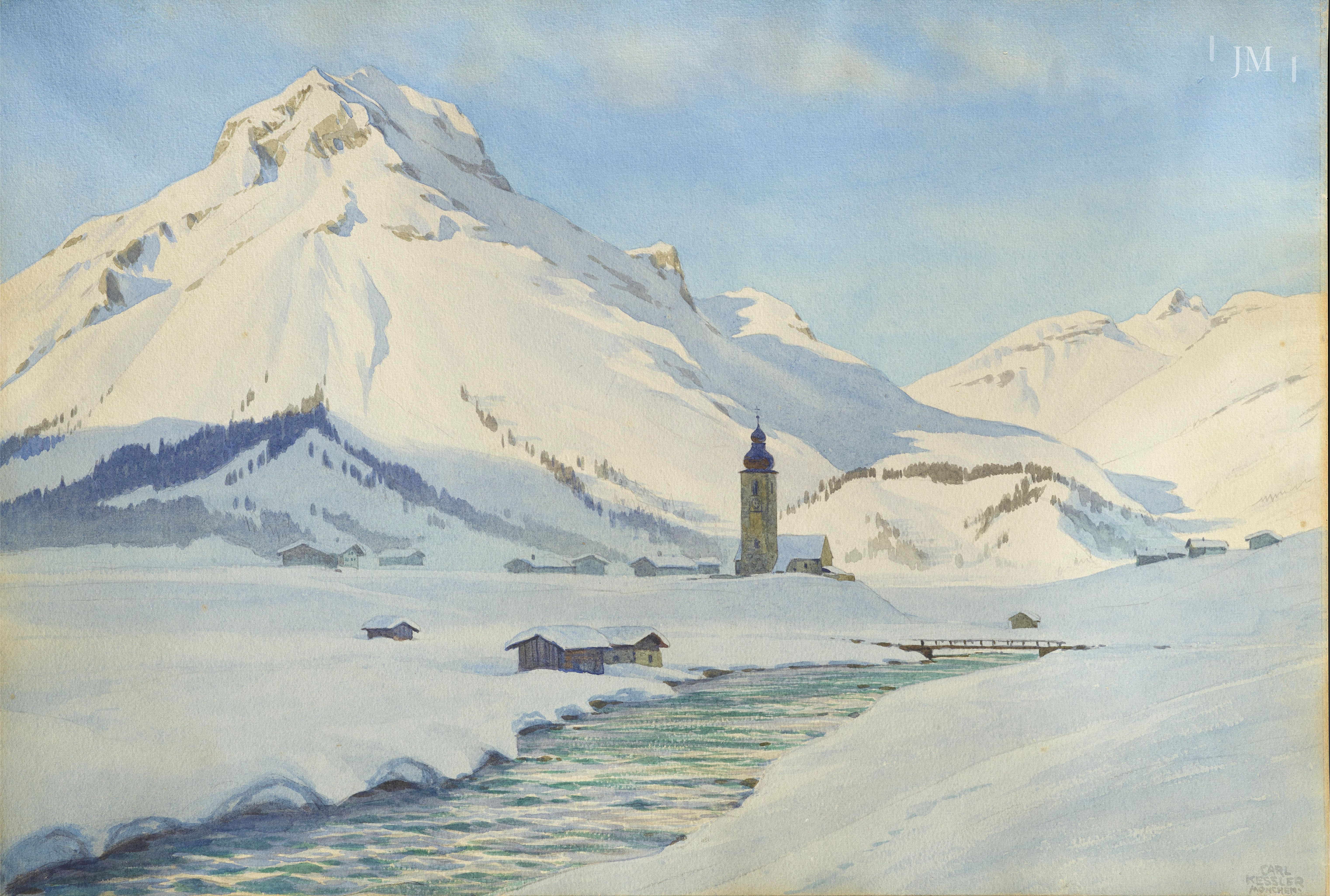 St. Nikolaus church in Lech with the Widderstein, Vorarlberg, Austria.