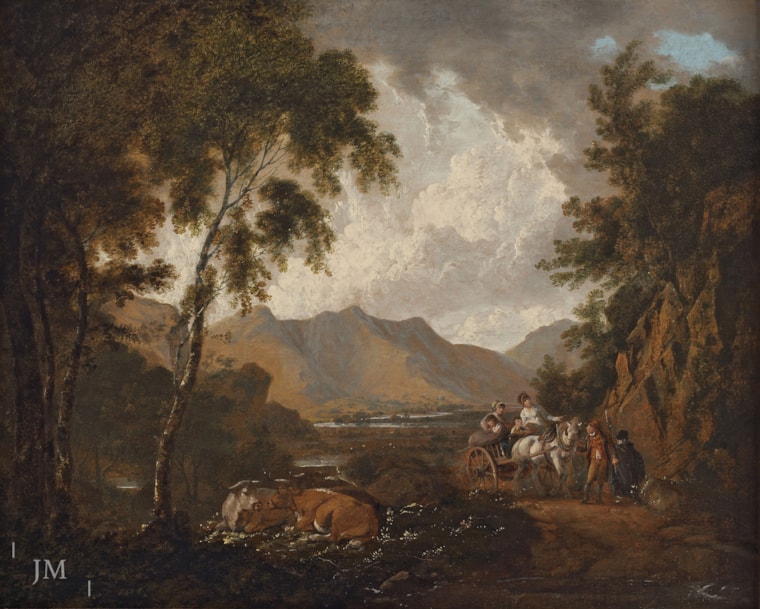 Carters at rest on a wooded track, in the style of George Morland